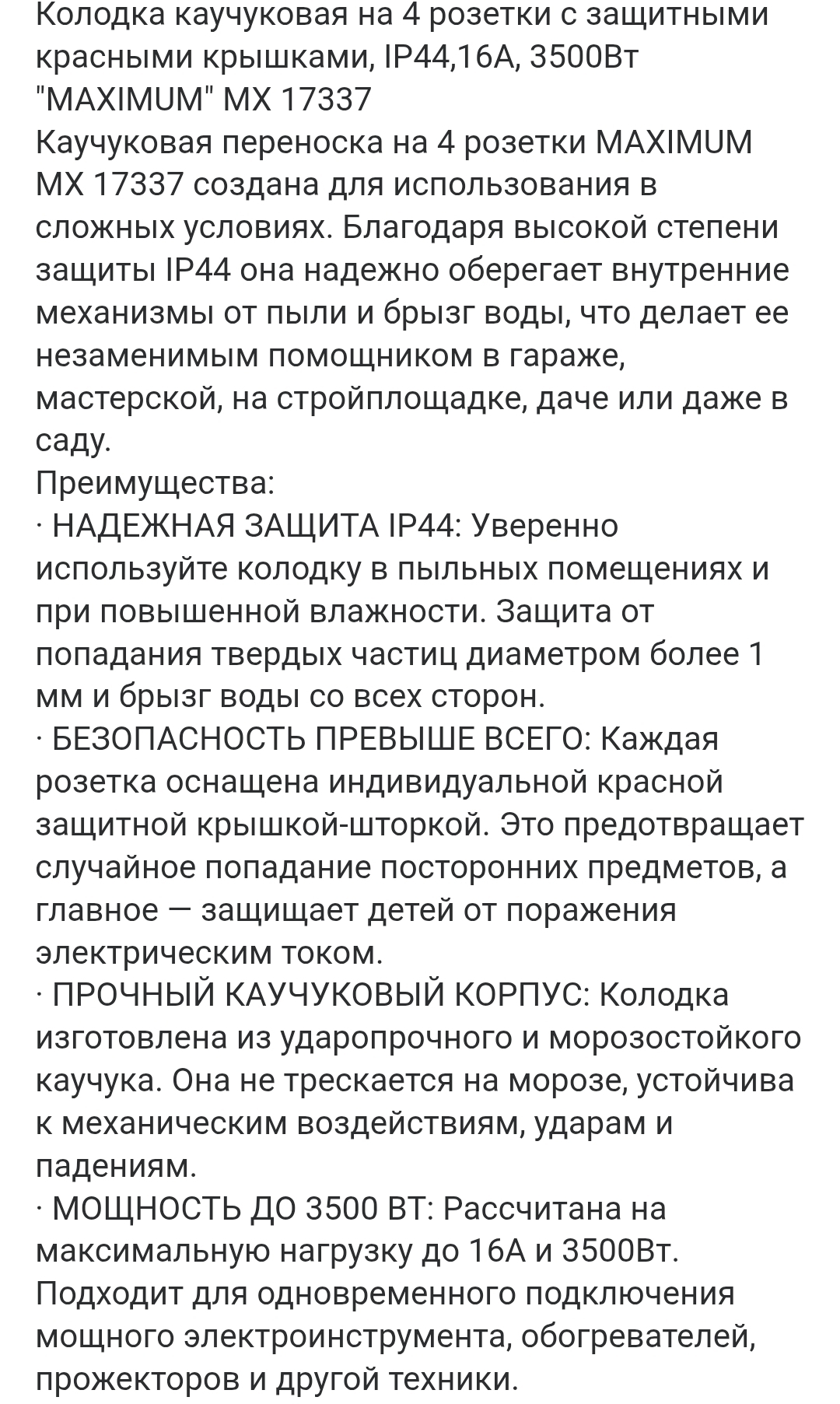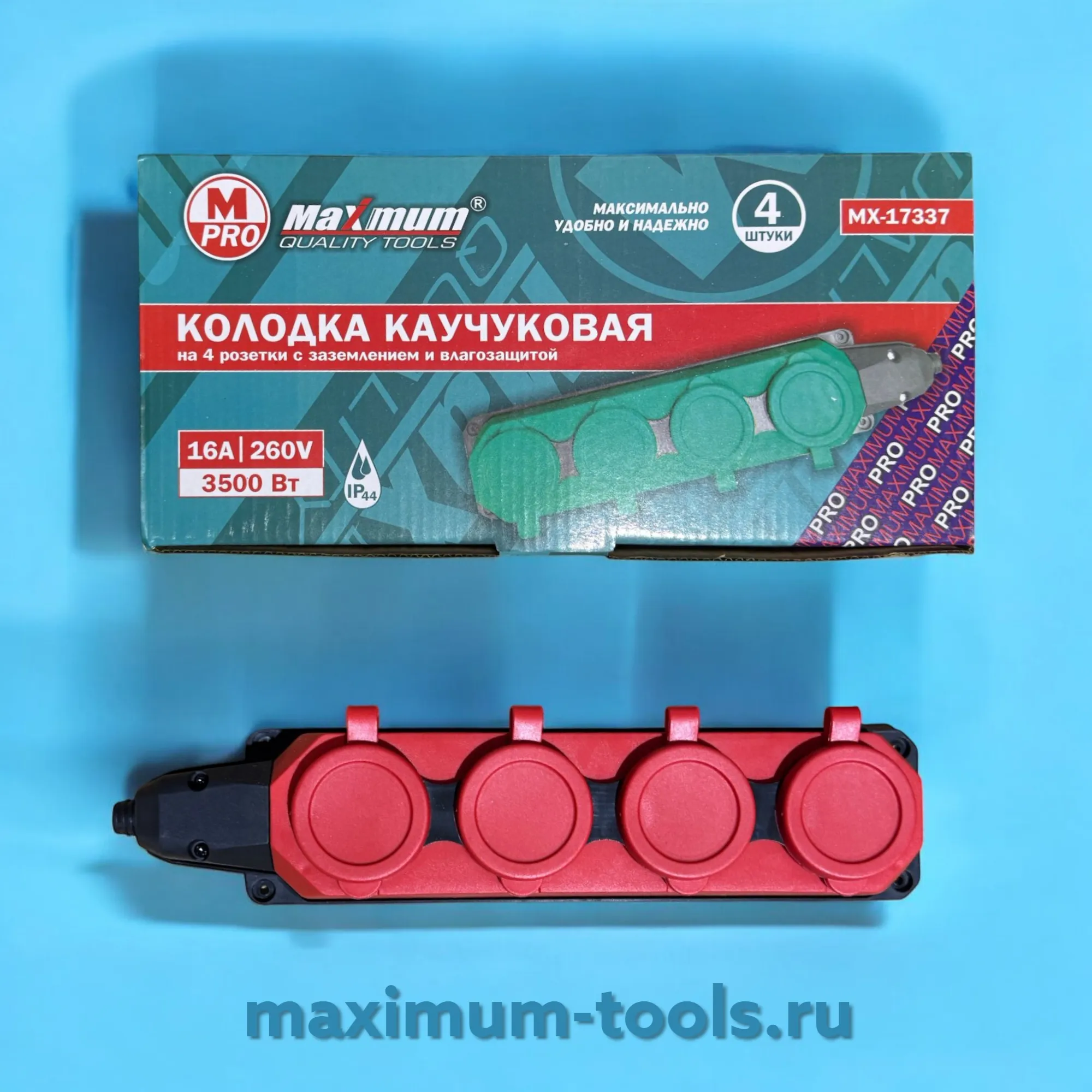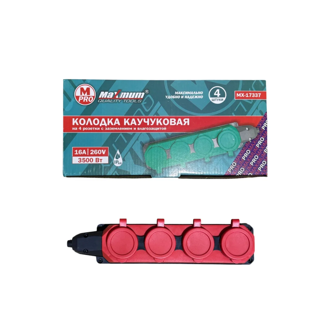 Каучуковая переноска на 4 розетки MAXIMUM MX 17337 создана для использования в сложных условиях. Благодаря высокой степени защиты IP44 она надежно оберегает внутренние механизмы от пыли и брызг воды, что делает ее незаменимым помощником в гараже, мастерской, на стройплощадке, даче или даже в саду.