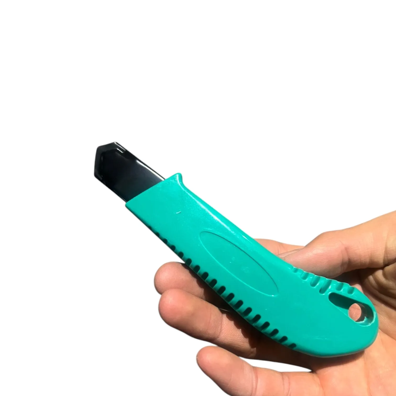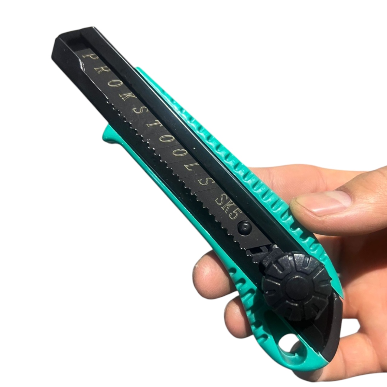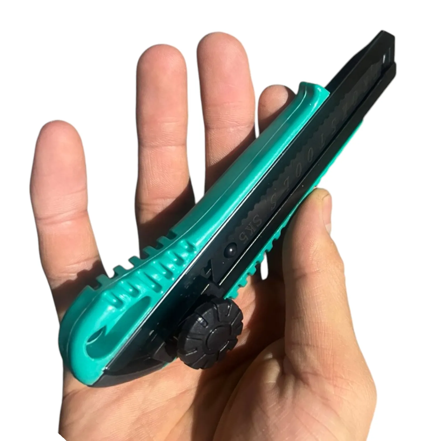 Пластиковый корпус с металлическими направляющими надежно удерживает острое сегментированное лезвие из стали SK 5.