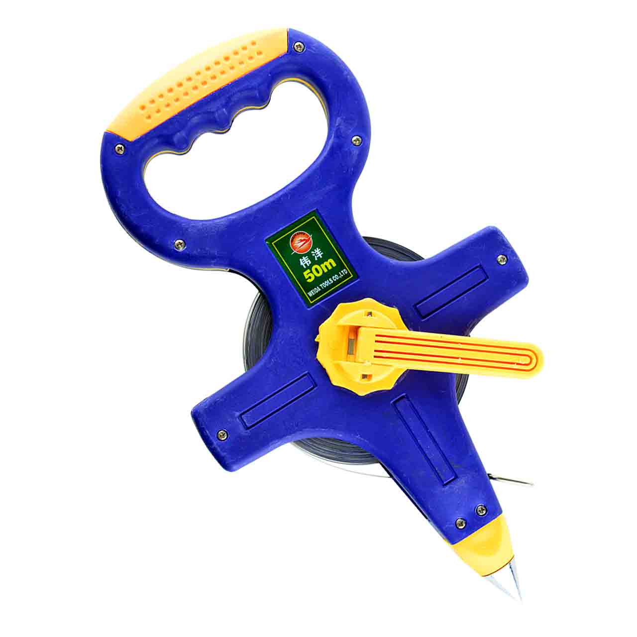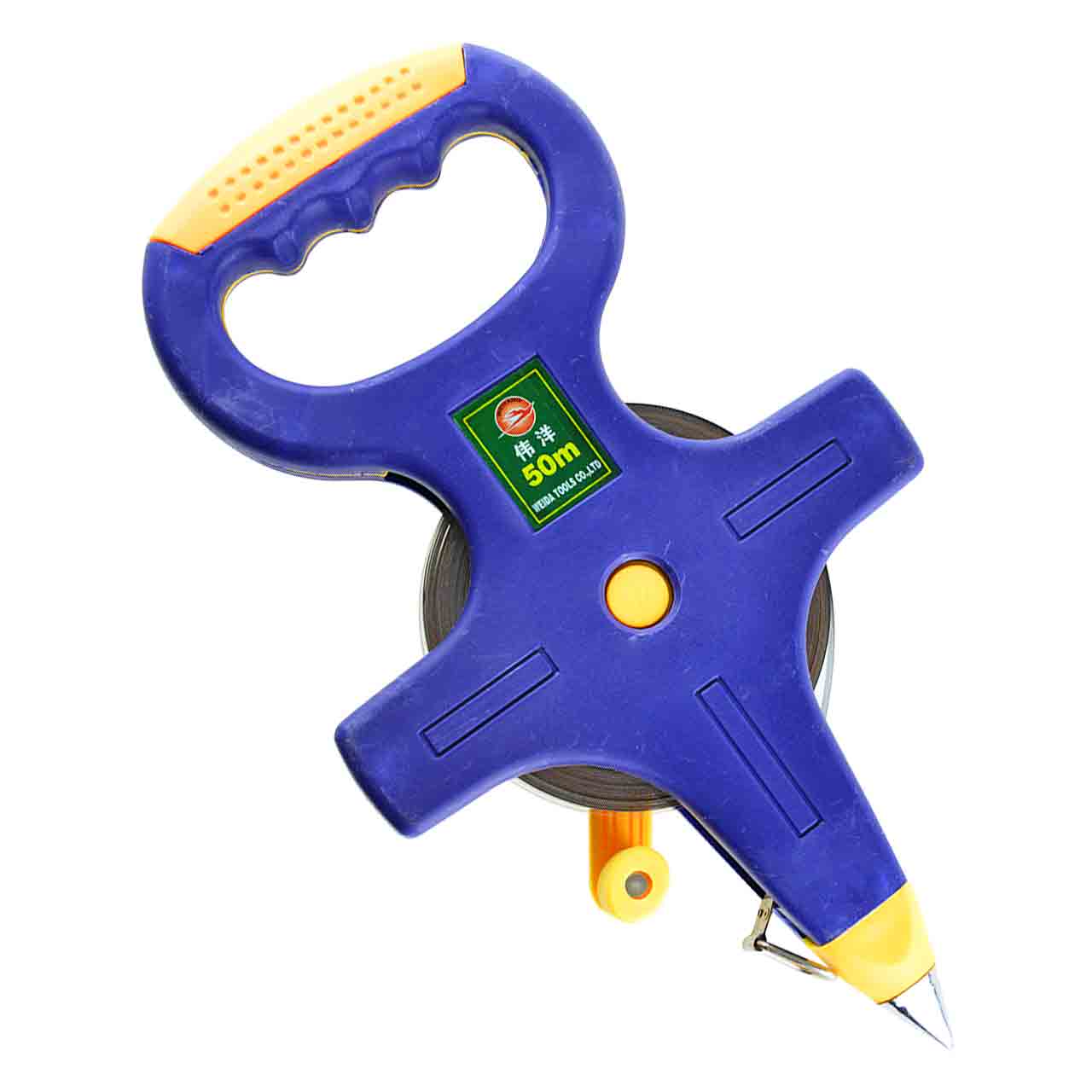 Рулетка измерительная геодезическая с железной лентой, 50 м предназначена для измерения дальних расстояний. Полотно геодезической рулетки отличается высокой жесткостью. Измерительная лента помещена в открытый пластмассовый корпус эргономичной формы, который имеет складывающуюся катушечную ручку, позволяющую легко и быстро сматывать рулетку.