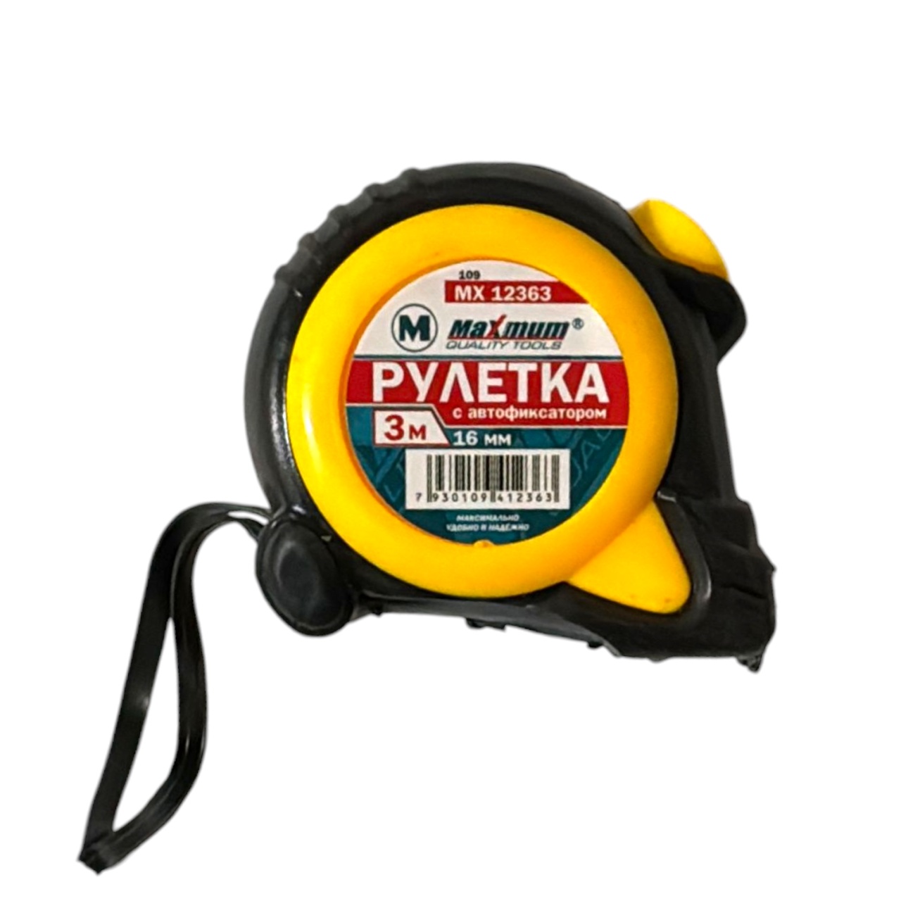 Рулетка измерительная 3 м x 16 мм от нашего фирменного бренда "MAXIMUM QualityTools" не ломается, не ржавеет, так как она выполнена из ударопрочного АБС-пластика с обрезиненным нескользящим покрытием. Автофиксатор и зажимная клавиша делают работу удобной и быстрой. Измерительная лента выполнена из высокоуглеродистой стали, выдерживает повышенные нагрузки при эксплуатации и не заламывается. При помощи специальных зубьев на зацепе рулетки можно наносить царапины или отметки, что особенно удобно, когда осуществляется измерение большого расстояния.
