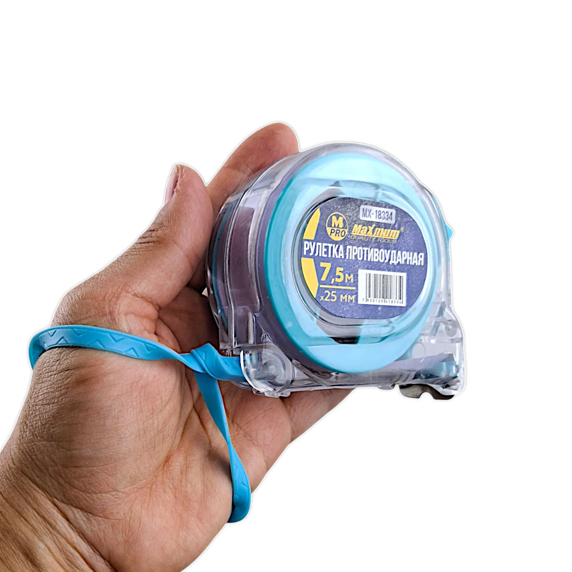 Рулетка 7.5 м с поясным зажимом противоударная от "Maximum" оборудована широкой стальной лентой 25 мм.
