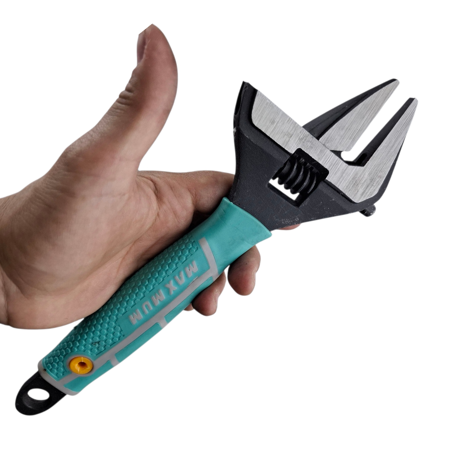 Ключ с тонкими губками разводной 250 мм имеет эргономичную прорезиненную ручку и хороший баланс веса. Стильный яркий дизайн в сине-черных тонах дополнен двухкомпонентной удобной рукояткой. Фосфатированное покрытие хром-ванадиевой стали защищает инструмент от коррозии. Максимальная ширина раскрытия губок 50 мм позволяет работать с деталями разного размера. А тонкие шлифованные губки шириной 6 мм позволяют работать деликатно и в условиях ограниченного пространства.