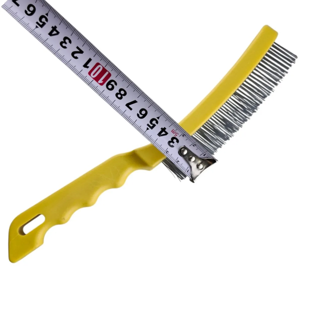 Ручная щетка с шестью рядами жёсткого металлического ворса — незаменимый инструмент для интенсивной очистки и обработки поверхностей. Она изготовлена из прочной стальной проволоки и ударопрочного пластика. Эргономичная ручка с отверстием для подвешивания обеспечивает удобный хват и компактное хранение. Общая длина щётки — 270 мм, длина жёсткого стального ворса — 25 мм.
