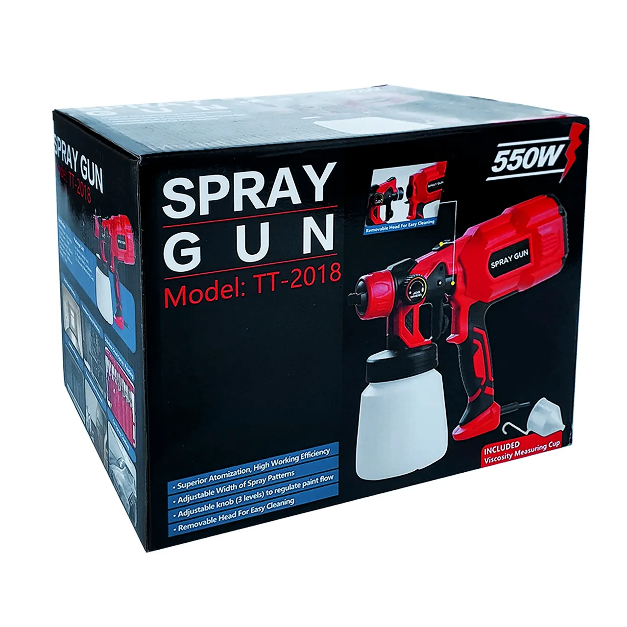 Электрический краскопульт использует новую технологию с регулируемой шириной распыления. Медное сопло увеличенного диаметра создано для большей производительности. Регулировка расхода позволяет использовать материалы различной вязкости (краски на разной основе, лаки и т.п.) и выполнять разнообразные работы (окраска, покрытие, опрыскивание). Регулировка формы сопла предназначена для горизонтальной и вертикальной окраски, а также для труднодоступных поверхностей. Расходная емкость объемом 800 мл позволяет длительно работать на одной заправке и не нагружает руки излишним весом. Простая очистка после использования. Стакан для проверки вязкости в комплекте. Потребляемая мощность 550 Вт. Скорость двигателя 32 000 об / мин. Краскопульт дополнен удобной двухкомпонентной рукояткой.