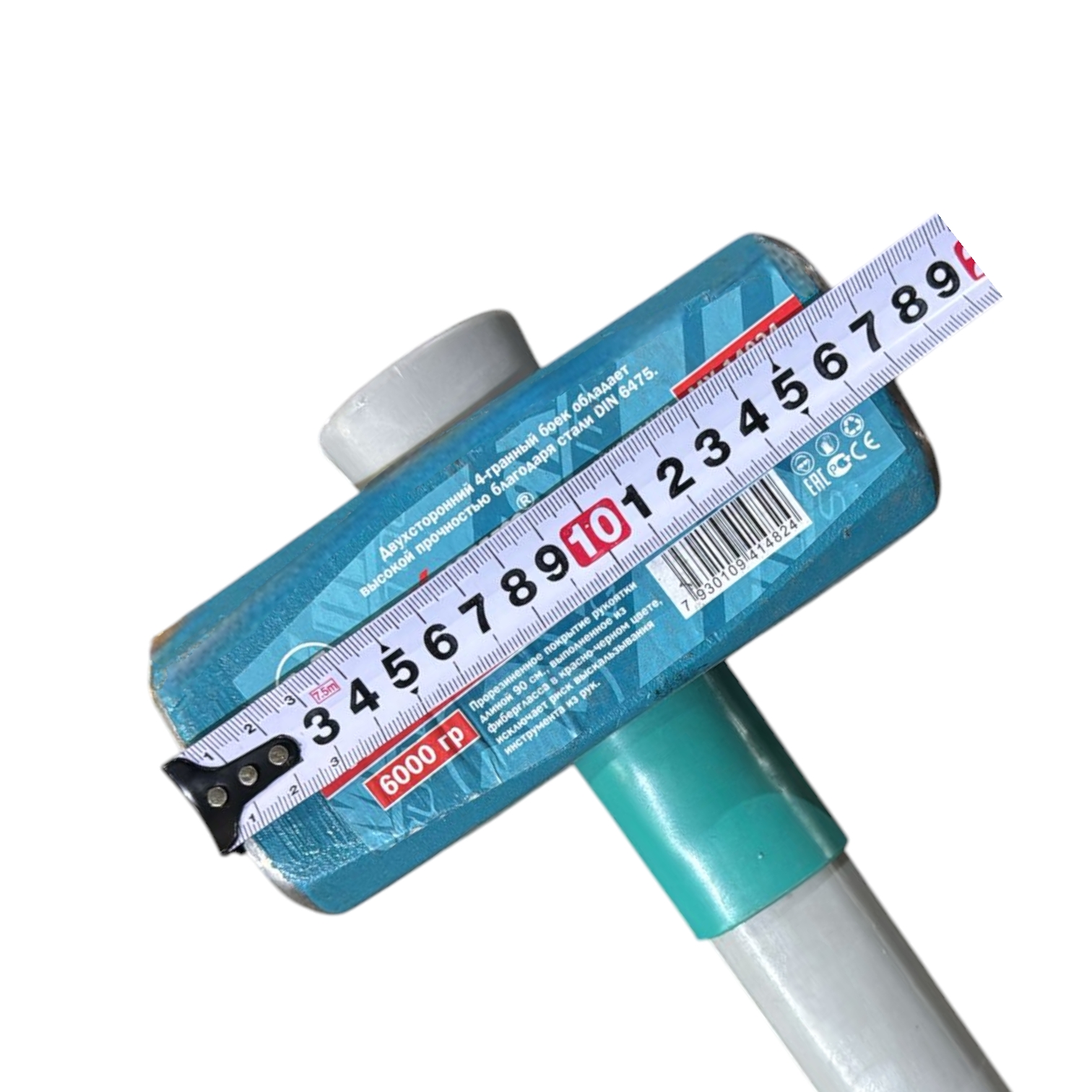 Литая стальная головка закалена и покрыта лаком цвета тиффани для увеличения стойкости к коррозии. Прорезиненное покрытие рукоятки длиной 90 см., выполненное из фибергласса в исключает риск выскальзывания инструмента из рук. Двухсторонний 4-гранный боек кованый кувалды обладает высокой прочностью благодаря стали DIN 6475.