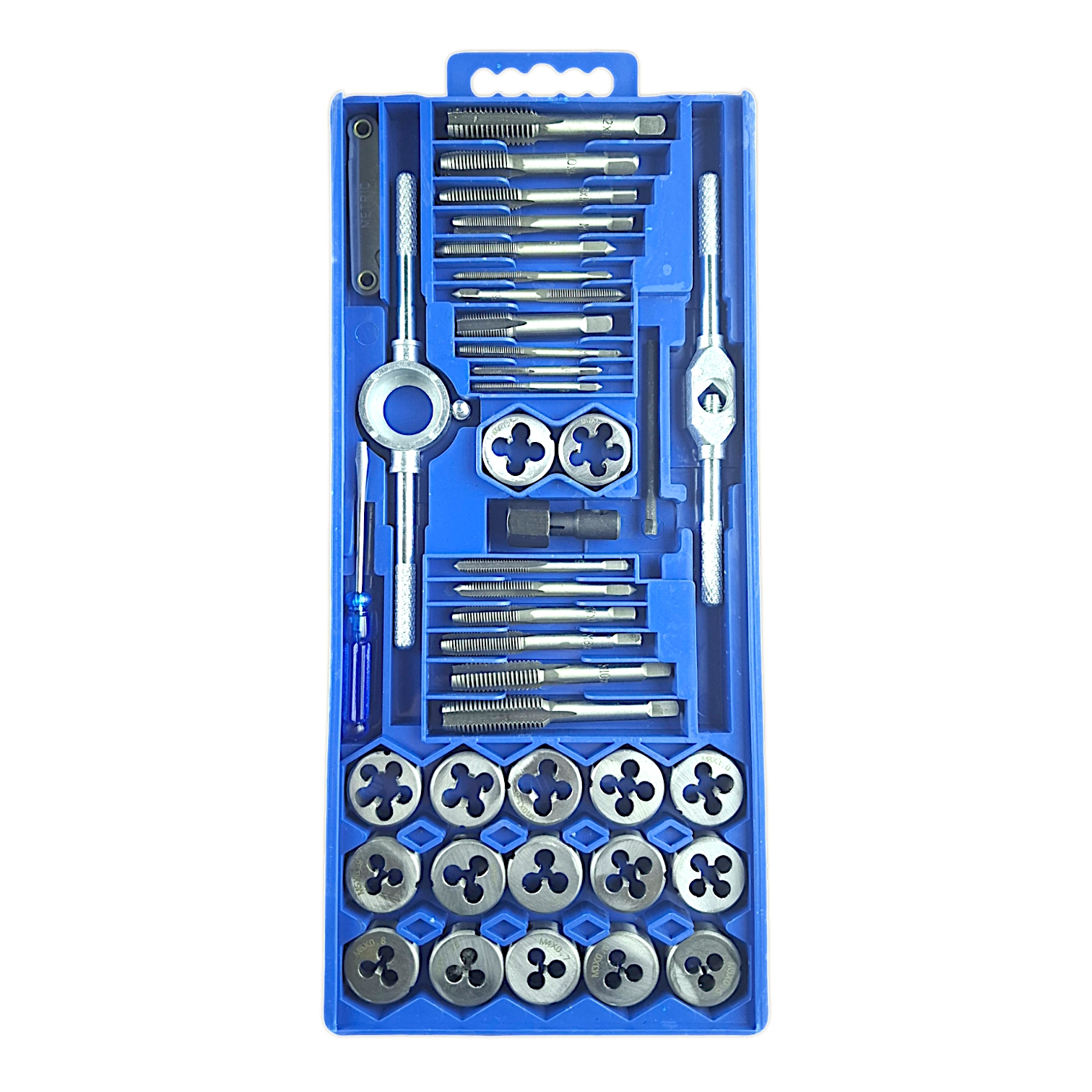 Набор метчиков и плашек состоит из 40 предметов, которые выполнены из высокоуглеродистой стали. Такой набор является просто незаменимым и никаких аналогов не имеет.