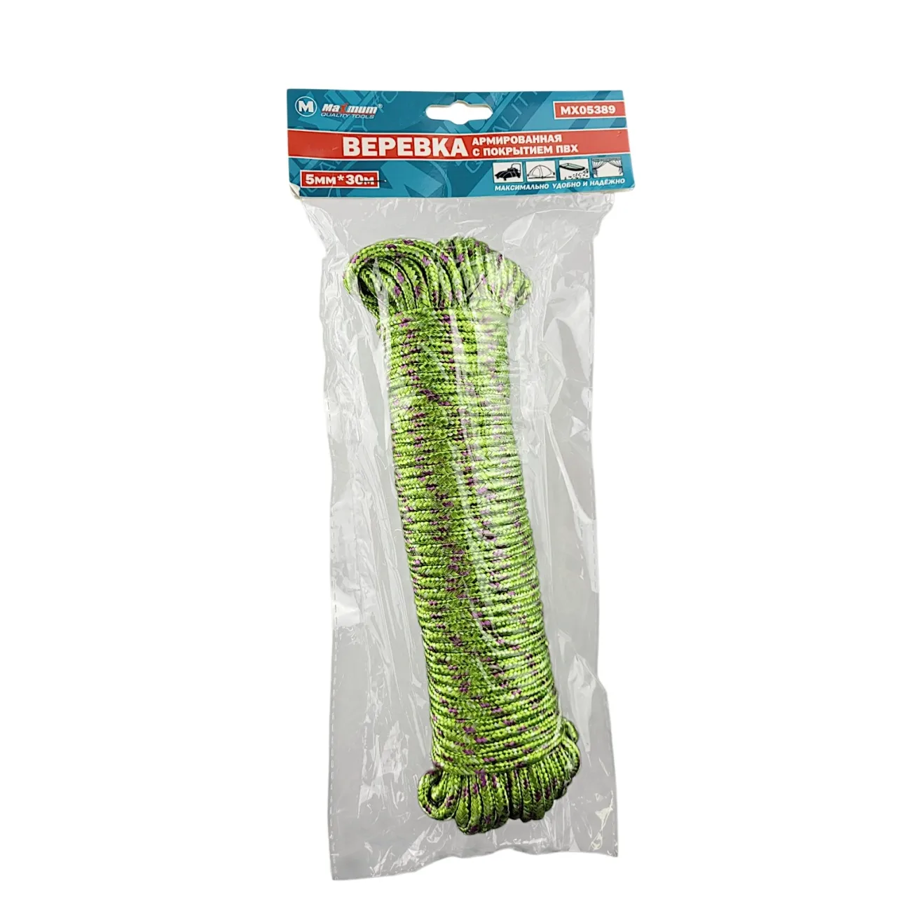 Шнур плетеный из полипропилена и представляет собой вязаный шнур длиной 30 метров. УФ-стабилизация позволяет веревке сохранить свойства длительное время. Этот шнур станет незаменимым помощником в хозяйстве благодаря своей прочности, износостойкости, долговечности. Шнур полипропиленовый, как и любой другой шнур, состоит из сердечника и оплетки. Сердечник шнура полипропиленового изготовлен из прямых полипропиленовых волокон, тогда как в других видах шнуров используют крученые нити. Благодаря особой конструкции шнур из полипропилена приобретает максимальную прочность.