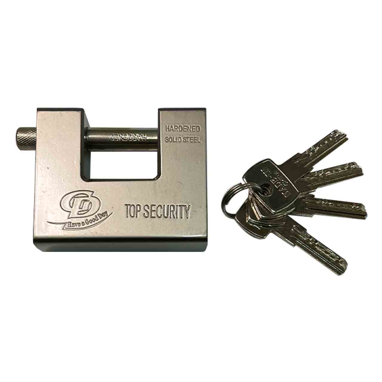 Навесной прямоугольный замок полузакрытого типа оборудован надежным цилиндровым механизмом, в дополнение к которому поставляется 4 перфорированных ключа повышенной секретности.