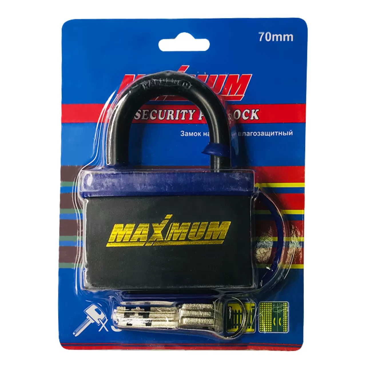 Замок навесный 70 мм прорезиненный обладает 6-пиновым механизмом запирания, обеспечивающим более 20000 различных комбинаций ключа. В механизме предусмотрено удержанием ключа в открытом состоянии замка.