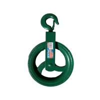 Крюк на блоке вращается вокруг своей оси. Блок имеет широкий шкив, что дает возможность использовать веревку с диаметром 16-25 мм.
