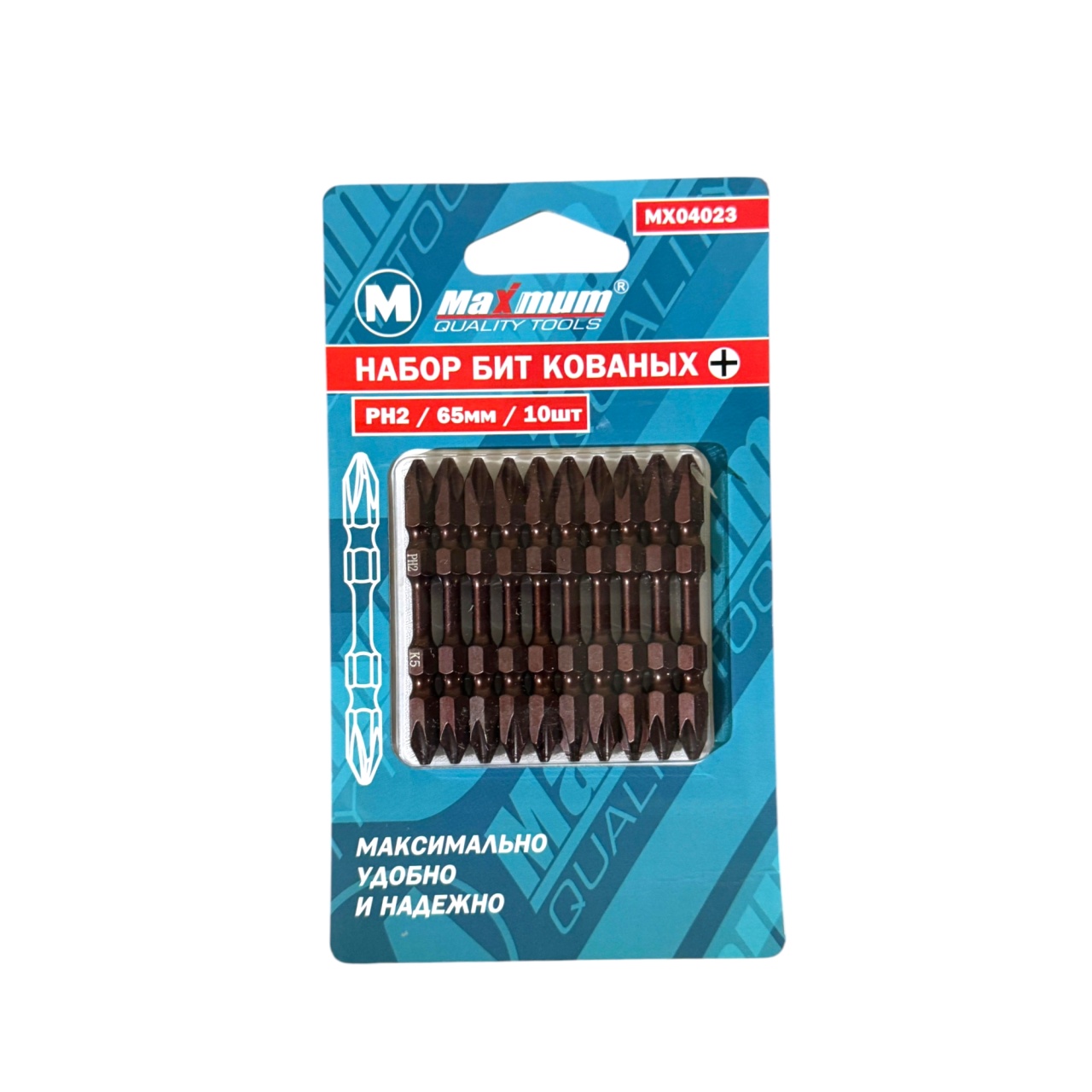 Биты торсионные двусторонние для ударного инструмента (PH2, 10 шт.) — прочность и защита от нашего бренда "Maximum".