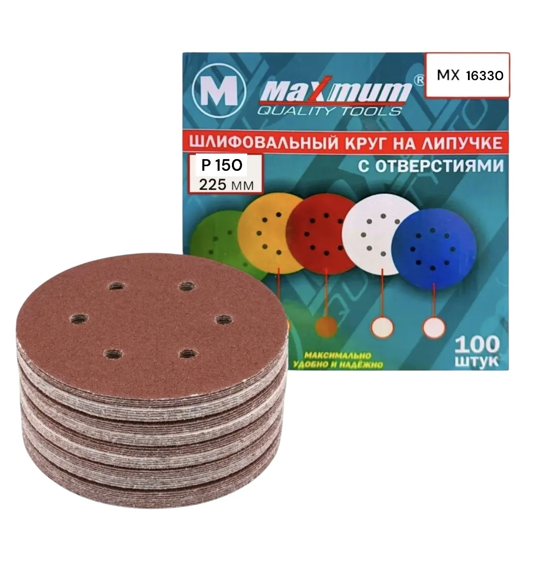 Шлифовальный круг на ворсовой подложке перфорированный Р 150 диметром 225 мм от «Maximum Quality Tools» предназначен для шлифовки деревянной, металлической, пластиковой и других поверхностей от лака, краски, ржавчины, шпатлевки и др. 8 отверстий созданы для быстрого удаления пыли.