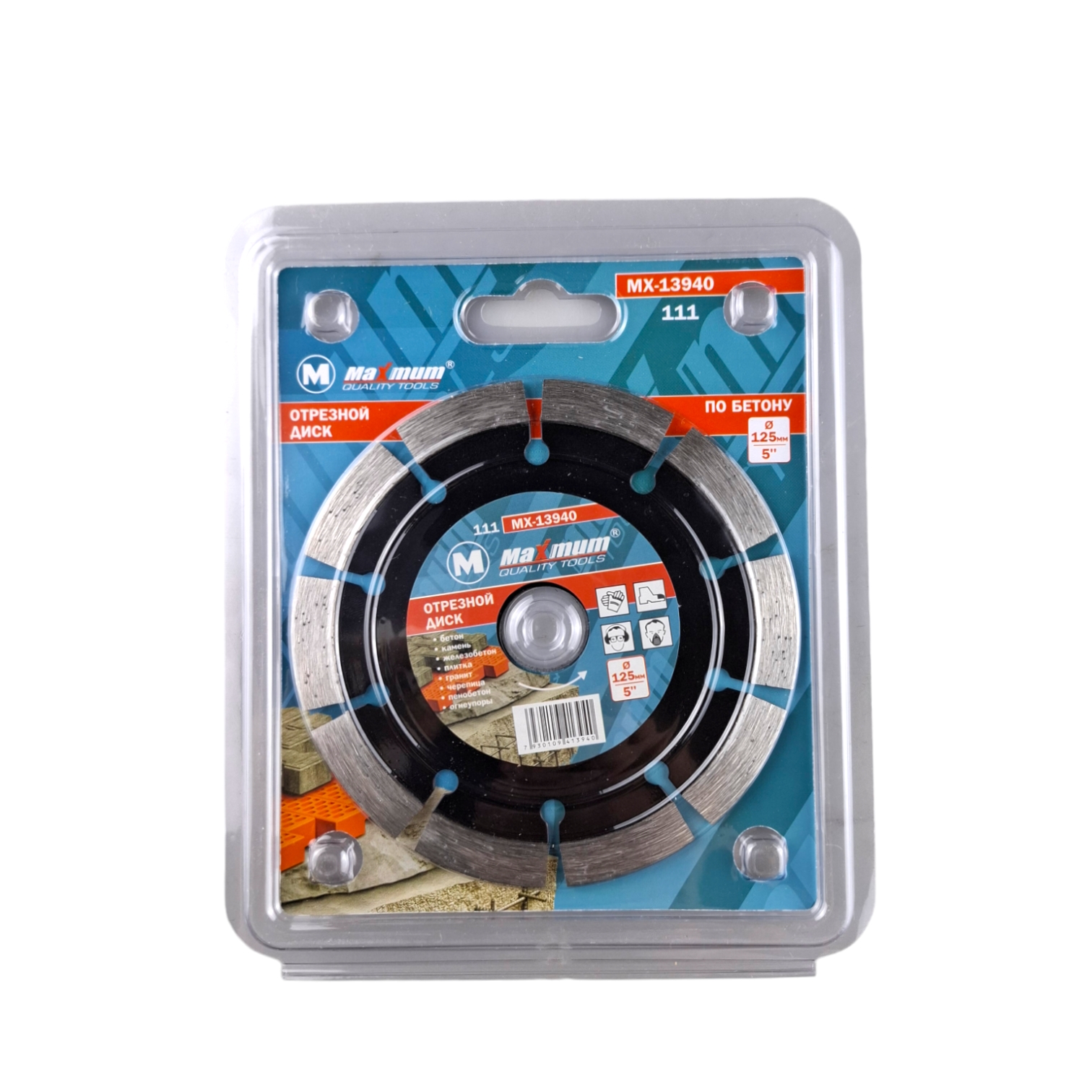 Универсальный алмазный диск 5" от "MAXIMUM QUALITY TOOLS" из профессиональной серии выполнен по технологии горячего спрессования и имеет рифлёные сегменты режущей кромки и перфорацию, которые способствуют дополнительному охлаждению диска. Назначение: армированный бетон, железобетон, бетон, бордюрный камень, натуральный камень, тротуарная плитка, кирпич.