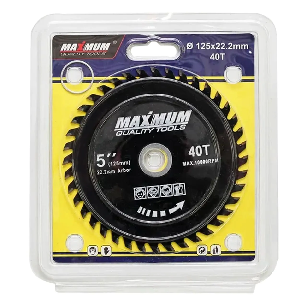 Диск по дереву 125 мм имеет 40 острых твердосплавных зубьев, которые режут дерево быстро, оставляя аккуратный, четкий срез. Пильный диск имеет посадочное место 22,2 мм и предназначен для распила изделий из древесины с помощью циркулярной пилы. Допустимое максимальное количество оборотов в минуту 10000.
