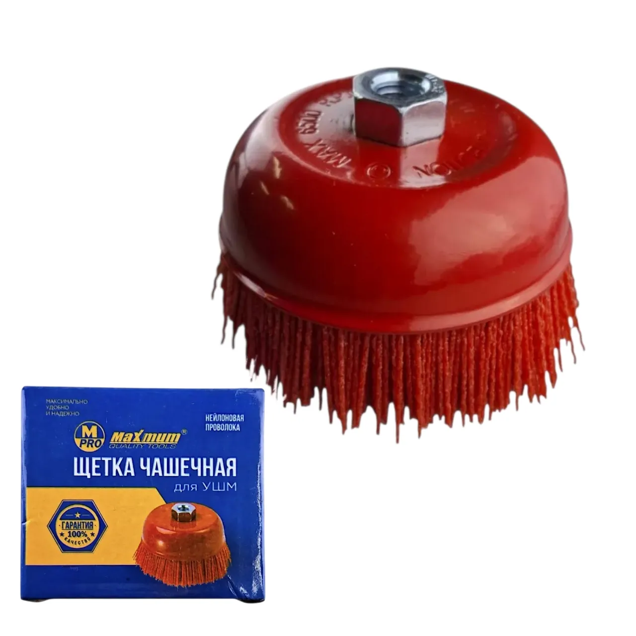 Профессиональная нейлоновая чашечная корщётка диаметром 100 мм(4 дюйма) от "MAXIMUM" создана для интенсивной работы в мастерской, гараже или на стройплощадке. Увеличенный диаметр обеспечивает высокую производительность при очистке значительных площадей.