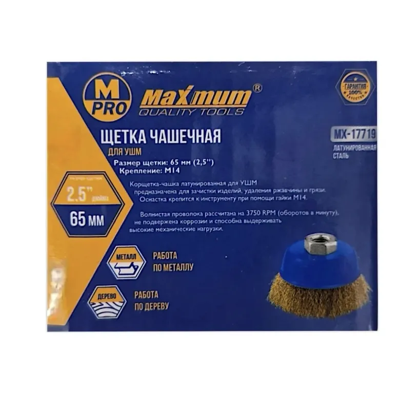 Чашечная латунированная корщетка 65 мм предназначена для установки на угловую шлифовальную машину (УШМ, "болгарку"). Она используется для интенсивной очистки, удаления стойких загрязнений и обработки больших площадей.