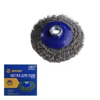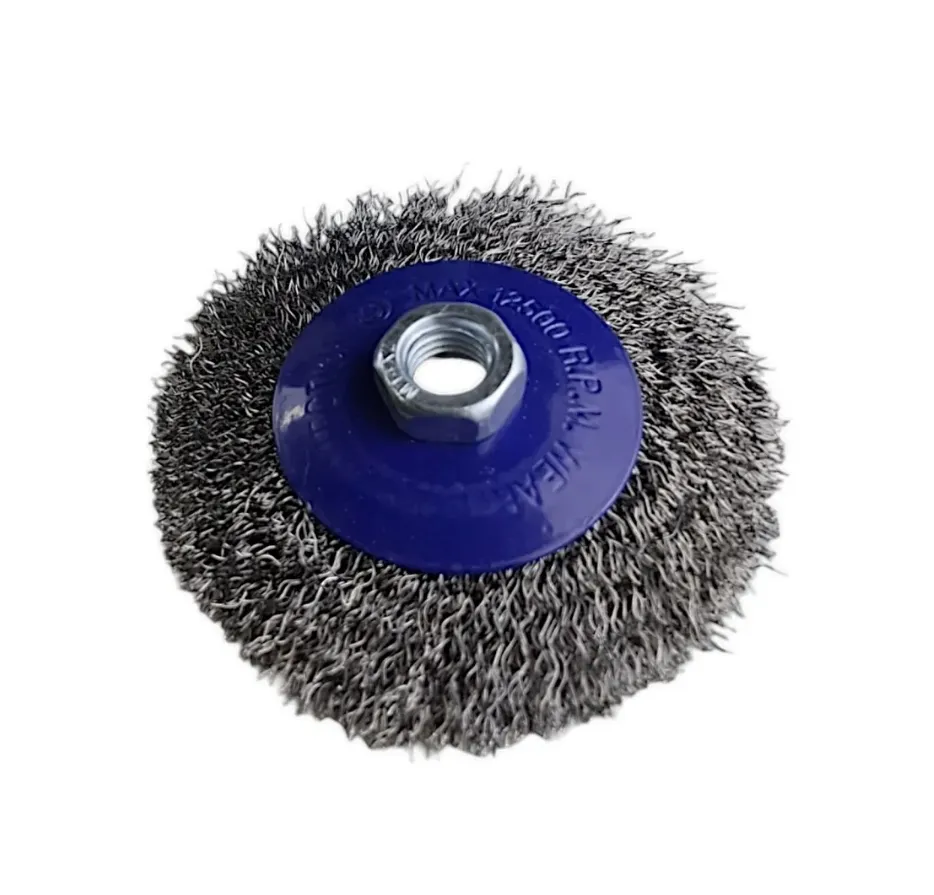 Качественная чашечная щетка с волнистой щетиной 4" оптимальная для деликатной, но эффективной очистки металла от ржавчины, краски и загрязнений. Она менее агрессивна, чем щетки с прямой щетиной, и подходит для подготовки поверхностей под покраску, где важно не оставить глубоких царапин.