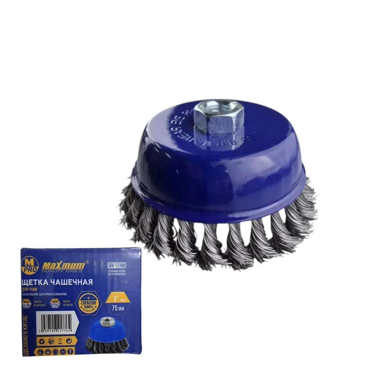 Витая чашечная щетка 3" от нашего бренда "Maximum" — профессиональный инструмент для быстрой и агрессивной зачистки металла. Стальная проволока толщиной 0.5 мм скручена в жгуты, которые затем собраны в щетку.