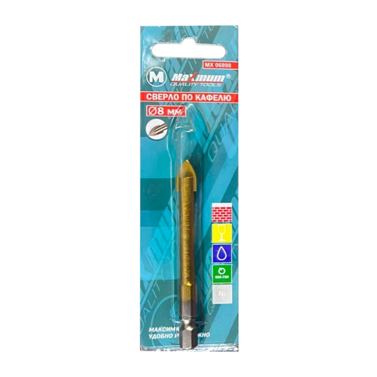 Сверло от бренда "MAXIMUM" диаметром 8 мм предназначено для керамики и стекла. Резец выполнен из прочного твердого сплава ВК6. Наконечник представляет собой копьевидную пластину с алмазной заточкой.