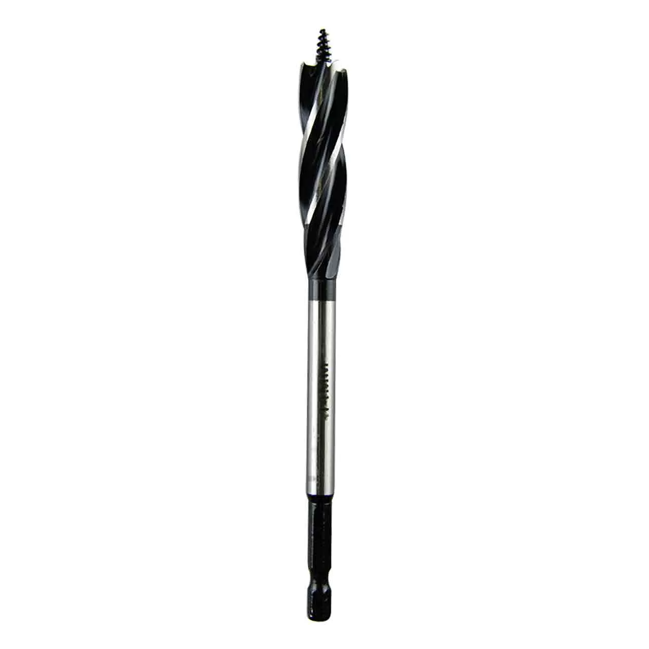 Винтовое сверло по дереву 10х165 мм с шестигранным хвостовиком предназначено для сверления отверстий в древесине под нагели или дюбели. Изделие выполнено из инструментальной стали, легированной хромом: обладает повышенной прочностью и износостойкостью и устойчиво к воздействию высоких температур. Резьба наконечника позволяет с меньшим усилием входить в материал. Специальный выступающий зуб обеспечивает чистое засверливание. Широкая спираль эффективно удаляет стружку из отверстия при сверлении. Используется совместно дрелью, имеющей соответствующий патрон. Возможно использование с перфоратором при наличии переходника и патрона: это значительно облегчает сверление за счет большей мощности электромотора.
