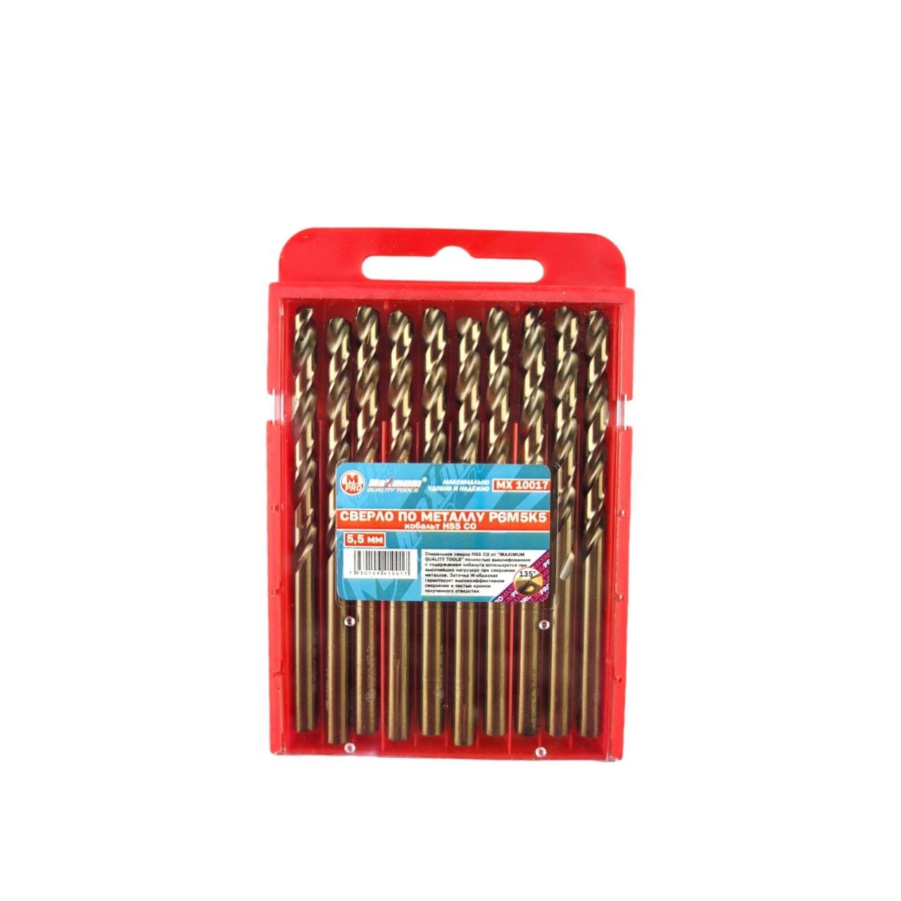 Сверла 5.5 мм для работ по металлу из стали P6M5K5 HSS CO от «Maximum Quality Tools» обработаны кобальтом, благодаря которому достигается высокий рабочий ресурс и термостойкость. Общая длина: 88 мм. Рабочая длина 50 мм. Сверло по металлу 5.5 мм применяется для нержавейки, титана, легированных сталей, чугуна, дерева. Добавление кобальта придает дополнительную жаропрочность – выдерживает температуру до 620-630°С. Обеспечивает быстрое и точное сверление отверстий. С данными кобальтовыми сверлами можно работать на повышенных скоростях резания – до 20 м/с.