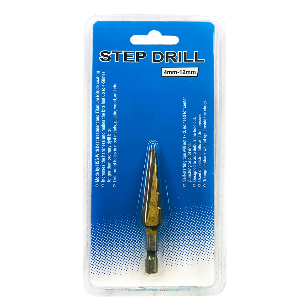 Сверло коническое по металлу изготовлено из высокопрочной стали HSS с износостойким титановым покрытием. Режущая кромка сверла 35° предназначена для получения отверстий в металле различного диаметра без перестановки режущего инструмента.