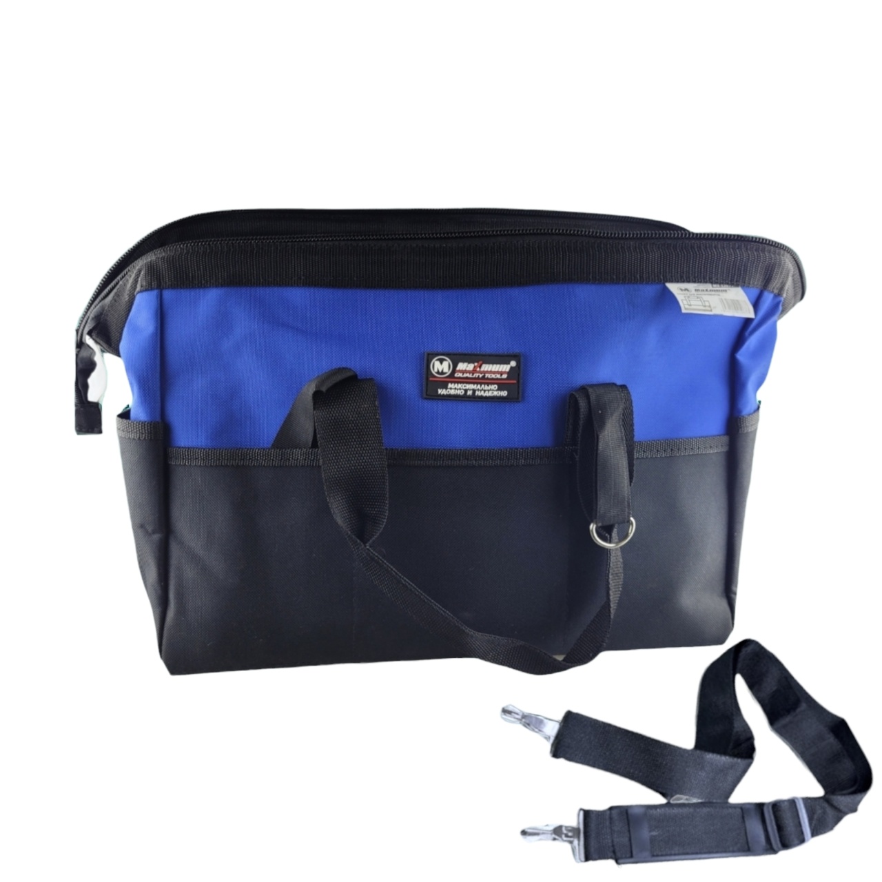 Сумка-органайзер для инструментов от "MAXIMUM QUALITY TOOLS" имеет внешние и внутренние карманы для удобного размещения, хранения и транспортировки рабочих инструментов (до 55 кг). Дно и каркас жесткие. Сумка-органайзер выполнена из водоотталкивающего материала: укреплённая двойная материя полиэстер Oxford 600D + 600D c ПВХ пропиткой.